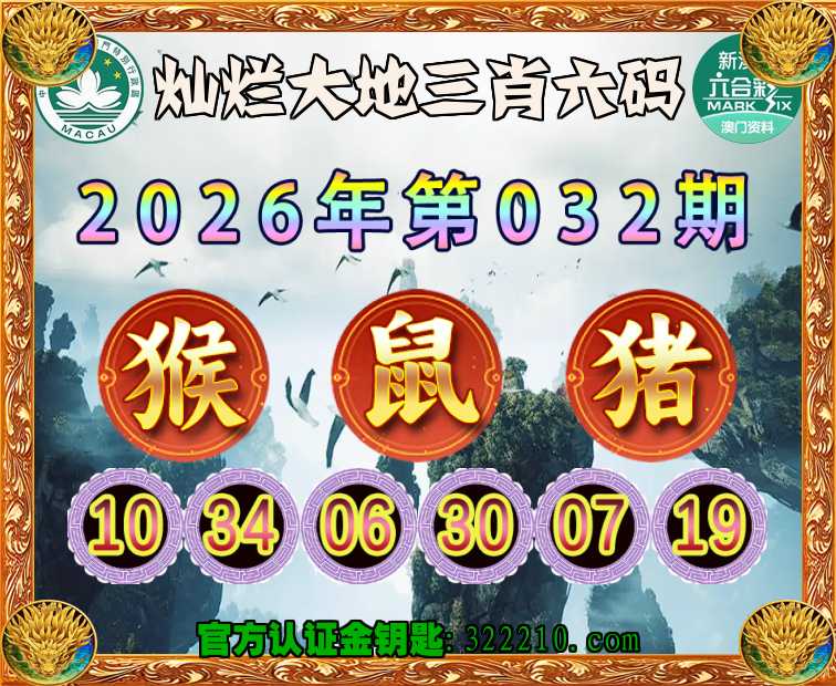 032期:【灿烂大地】 ♠️三肖六码♠️【猴猪】开:鼠06