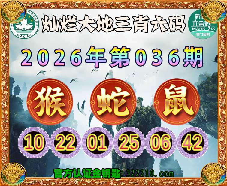 036期:【灿烂大地】 ♠️三肖六码♠️【猴鼠】开:蛇01