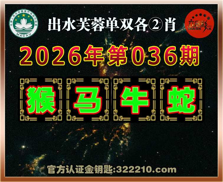 036期:《出水芙蓉》 ✌️单双各②肖✌️【猴.马.牛.】开:蛇01