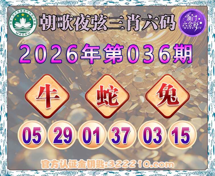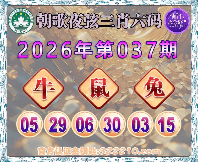 主题: 039期:金钥匙高手【朝歌夜弦🔥三肖六码】正版澳彩