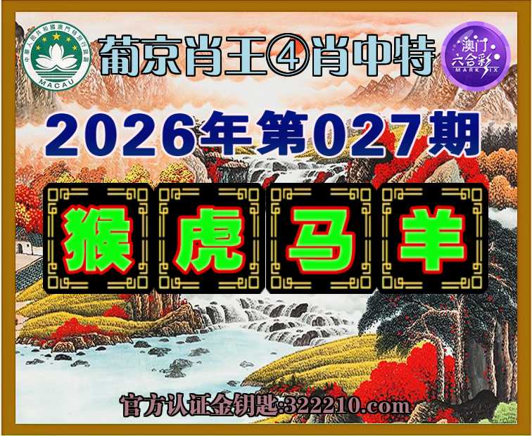 027期: 葡京肖王 🏆④肖中特🏆【猴.虎.马.羊】开:鸡45
