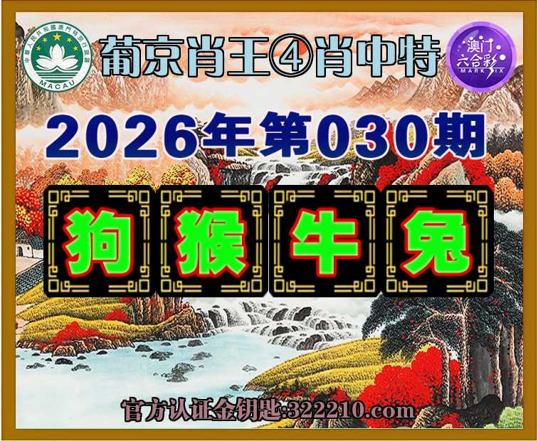 030期: 葡京肖王 🏆④肖中特🏆【狗.猴..兔】开:牛41