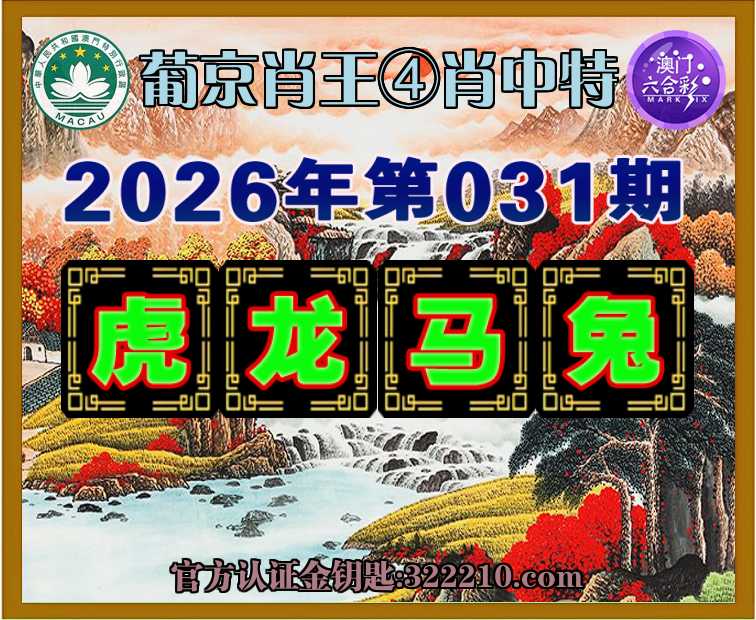 031期: 葡京肖王 🏆④肖中特🏆【虎..马.兔】开:龙26