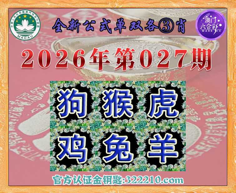 027期: 全新公式 👑单双各③肖👑【狗.猴.虎..兔.羊】开:鸡45