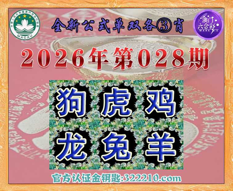 028期: 全新公式 👑单双各③肖👑【狗.虎.鸡.龙..羊】开:兔03
