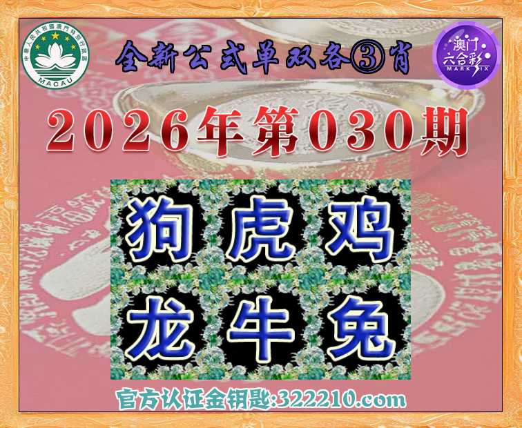 030期: 全新公式 👑单双各③肖👑【狗.虎.鸡.龙..兔】开:牛41