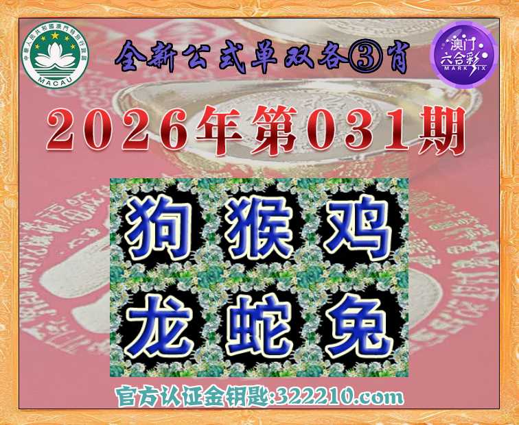 031期: 全新公式 👑单双各③肖👑【狗.猴.鸡..蛇.兔】开:龙26