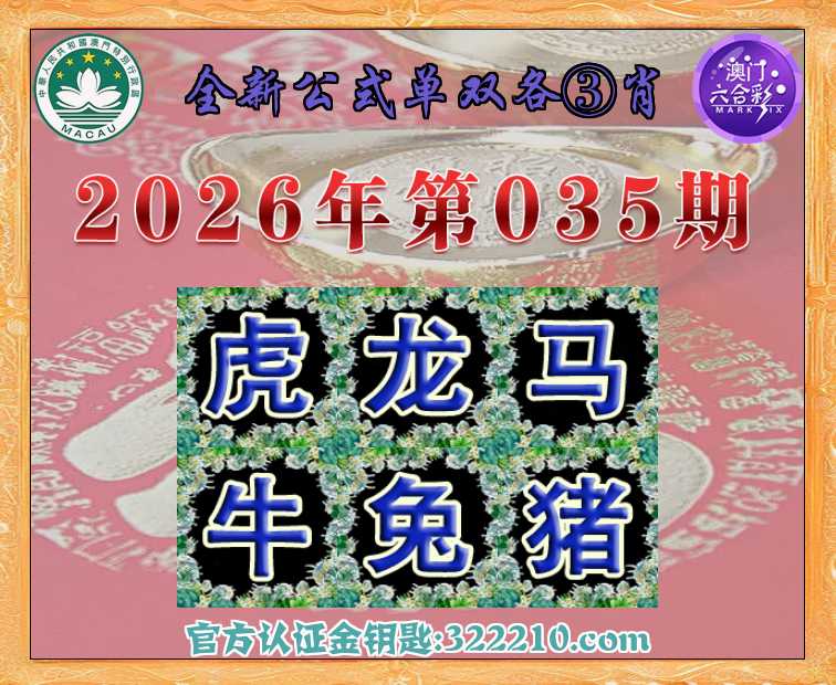 035期: 全新公式 👑单双各③肖👑【虎.龙.马.牛..猪】开:兔27