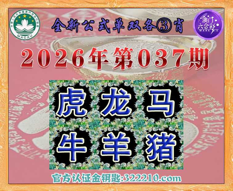 037期: 全新公式 👑单双各③肖👑【虎.龙.马.牛.羊.】开:猪43