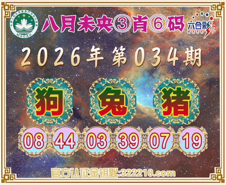 034期:【八月未央】 ♣️③肖⑥码♣️【狗兔】开:猪19
