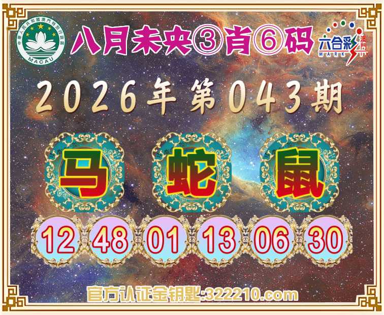 043期:【八月未央】 ♣️③肖⑥码♣️【马鼠】开:蛇13