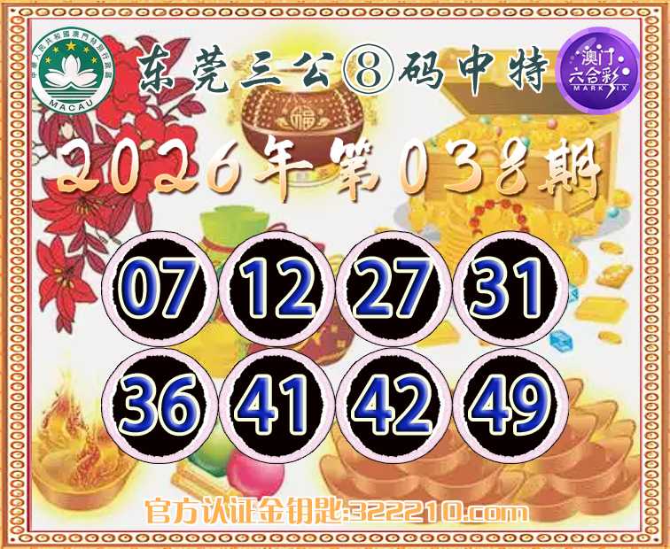 038期:【东莞三公】 📙⑧码中特📙开:42