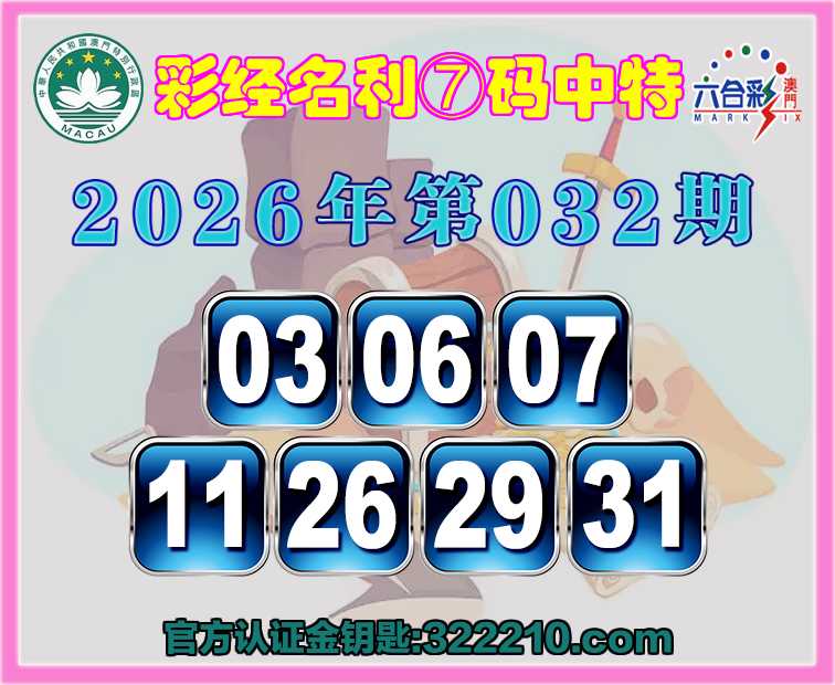 032期:〖彩经名利〗 🏇⑦码中特🏇【03.06.07.11.26.29.31】开:06
