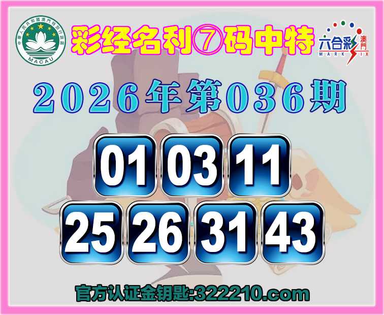 036期:〖彩经名利〗 🏇⑦码中特🏇【01.03.11.25.26.31.43】开:01