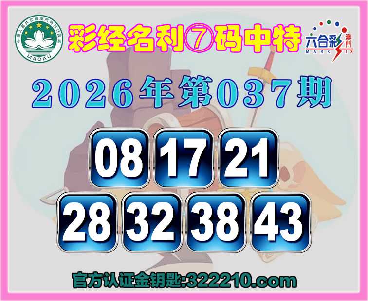 037期:〖彩经名利〗 🏇⑦码中特🏇【08.17.21.28.32.38.43】开:43