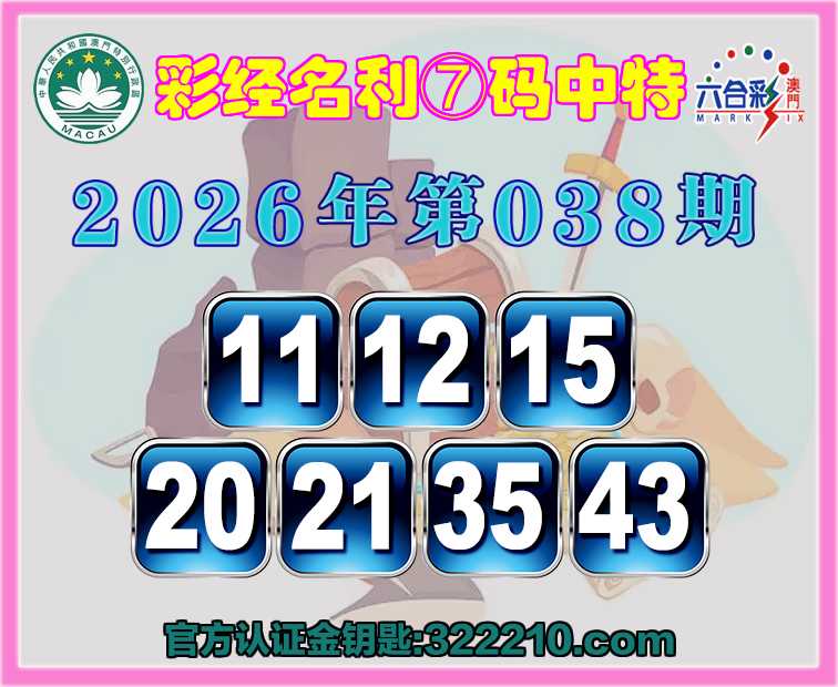 038期:〖彩经名利〗 🏇⑦码中特🏇【11.12.15.20.21.35.43】开:42