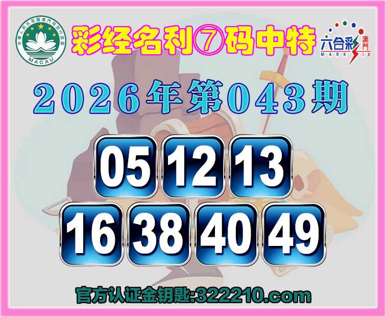 043期:〖彩经名利〗 🏇⑦码中特🏇【05.12.13.16.38.40.49】开:13