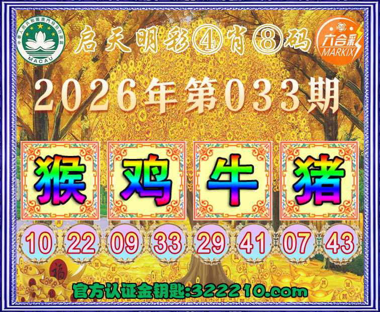 033期: 启天明彩 🍟④肖⑧码🍟【猴鸡猪】开:牛41