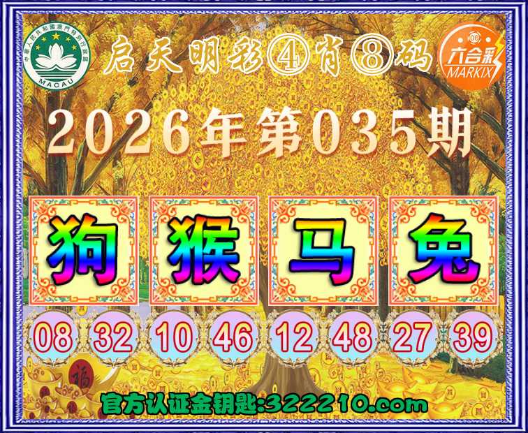 035期: 启天明彩 🍟④肖⑧码🍟【狗猴马】开:兔27