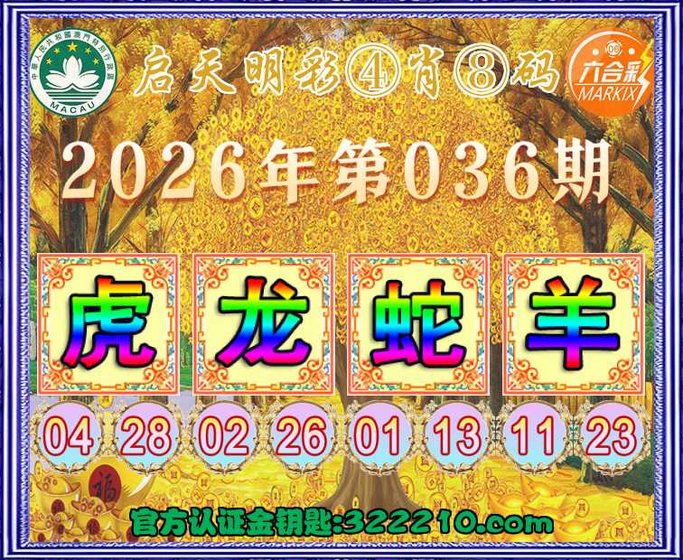 036期: 启天明彩 🍟④肖⑧码🍟【虎龙羊】开:蛇01