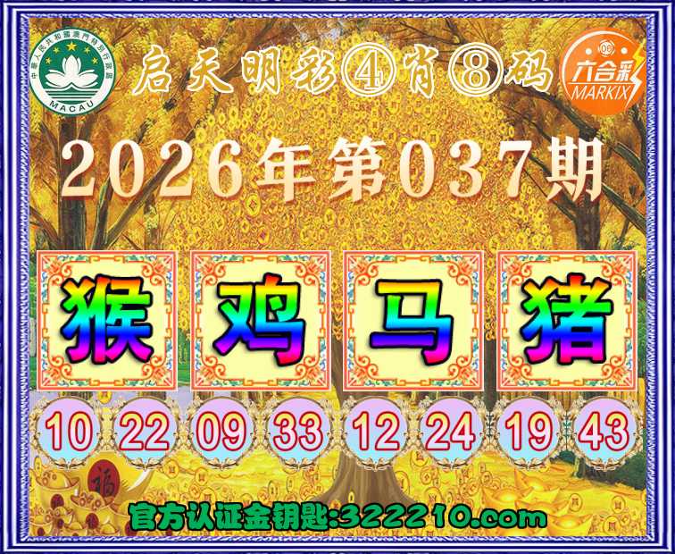 037期: 启天明彩 🍟④肖⑧码🍟【猴鸡马】开:猪43