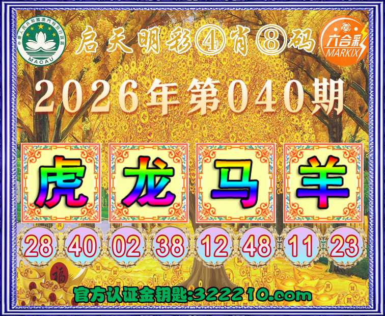 040期: 启天明彩 🍟④肖⑧码🍟【龙马羊】开:虎28