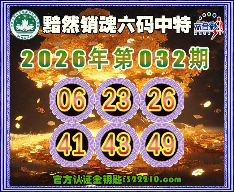 032期:《黯然销魂》 👑六码中特👑【06.23.26.41.43.49】开:06