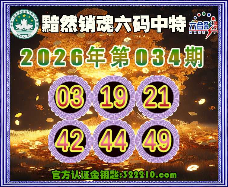 034期:《黯然销魂》 👑六码中特👑【03.19.21.42.44.49】开:19