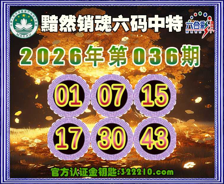 036期:《黯然销魂》 👑六码中特👑【01.07.15.17.30.43】开:01