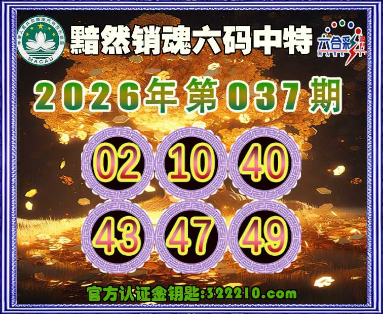 037期:《黯然销魂》 👑六码中特👑【02.10.40.43.47.49】开:43