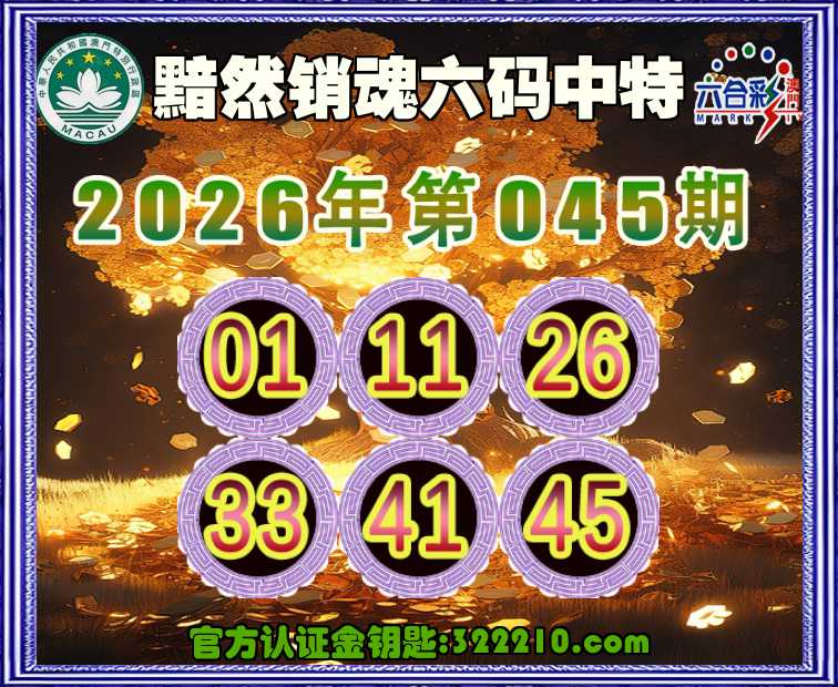 045期:《黯然销魂》 👑六码中特👑【01.11.26.33.41.45】开:01