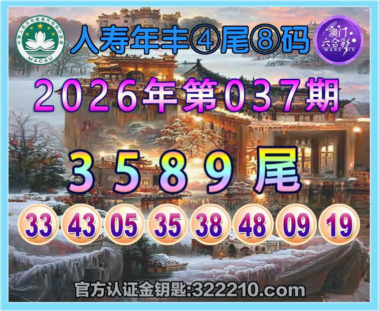 037期:〖人寿年丰〗 🥽④尾⑧码🥽【3589尾】开:43