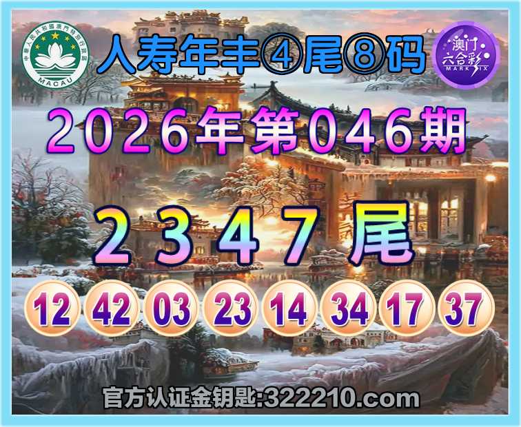046期:〖人寿年丰〗 🥽④尾⑧码🥽【2347尾】开:03