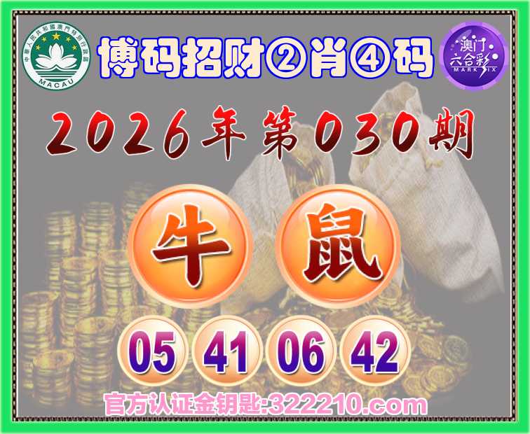 030期: 博码招财 🚣②肖④码🚣【鼠】【05.41.06.42】开:牛41