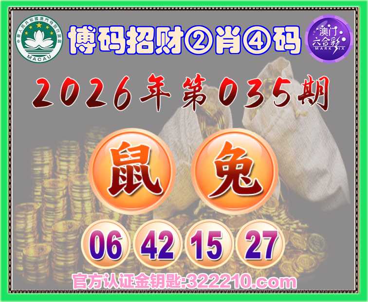 035期: 博码招财 🚣②肖④码🚣【鼠】【06.42.15.27】开:兔27