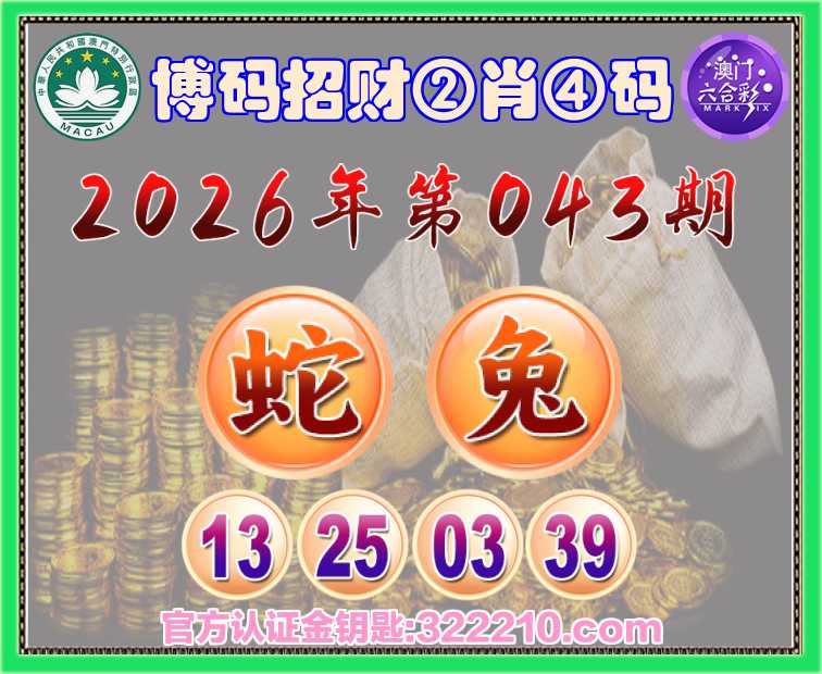 043期: 博码招财 🚣②肖④码🚣【兔】【13.25.03.39】开:蛇13