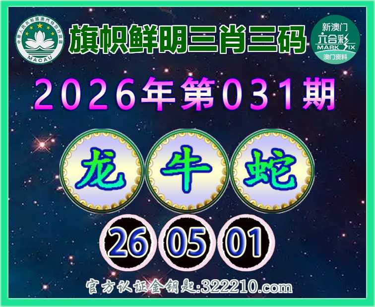 031期:『旗帜鲜明』 🩴三肖三码🩴【牛蛇】【26.05.01】开:龙26