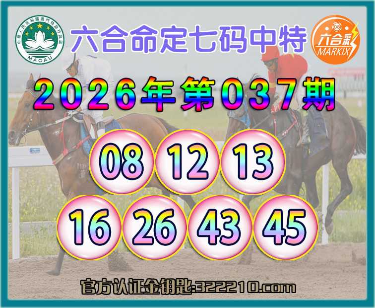 037期:【六合命定】 🌲七码中特🌲【08.12.13.16.26.43.45】开:43