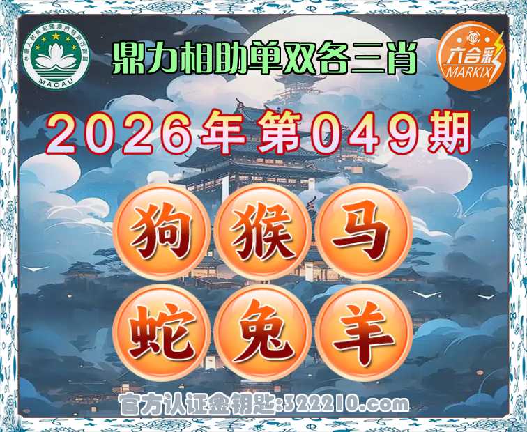049期:【鼎力相助】 👑单双各三肖👑【狗.猴..蛇.兔.羊】开:马13