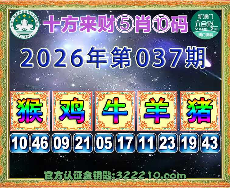 037期:《十方来财》 ☺️⑤肖⑩码☺️【猴鸡牛羊】开:猪43