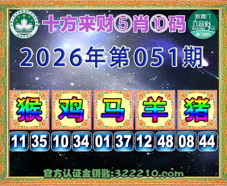 051期:《十方来财》 ☺️⑤肖⑩码☺️【猴鸡羊猪】开:马01