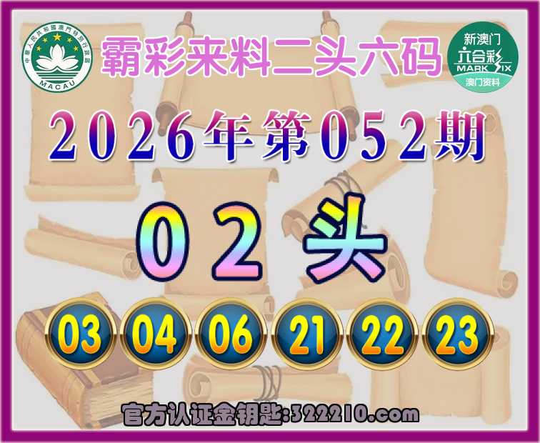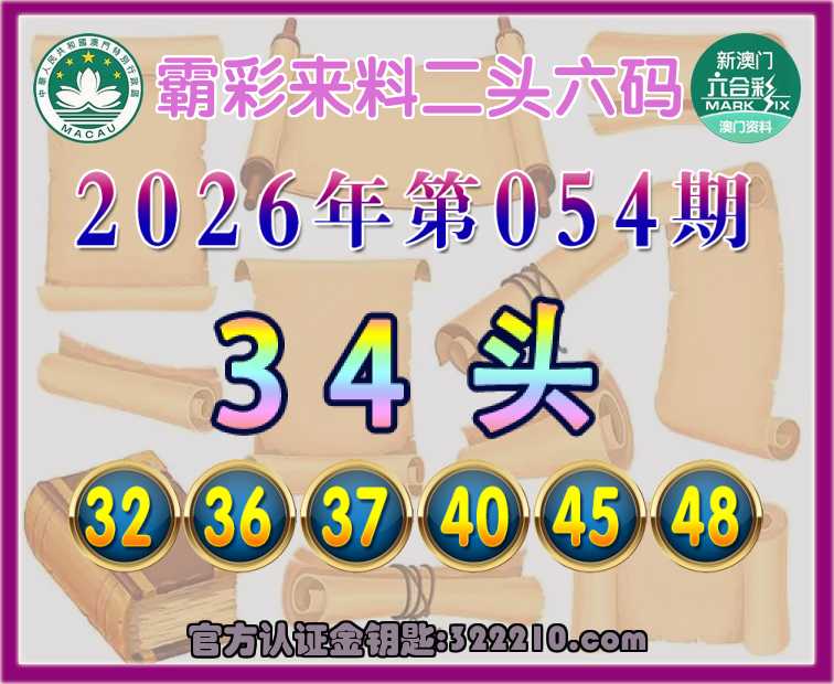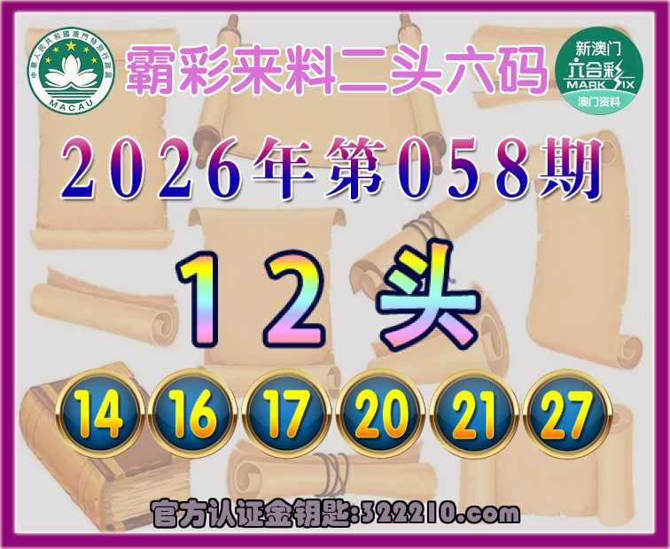 主题: 058期:金钥匙高手【霸彩来料🔥二头六码】正版澳彩