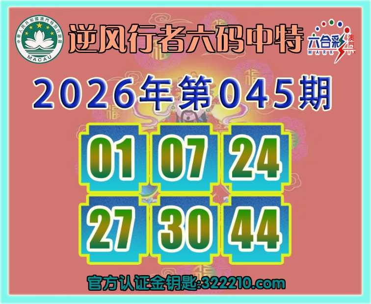 045期:【逆风行者】 🌷六码中特🌷【01.07.24.27.30.44】开:01