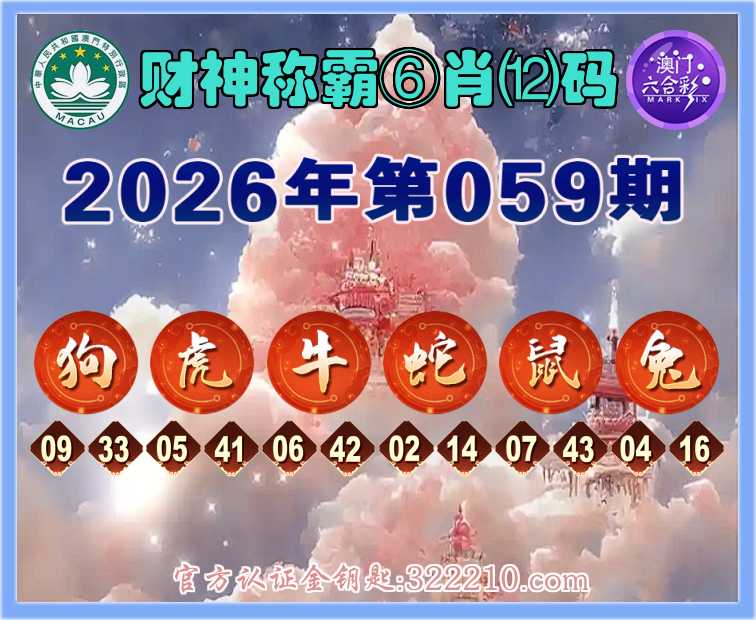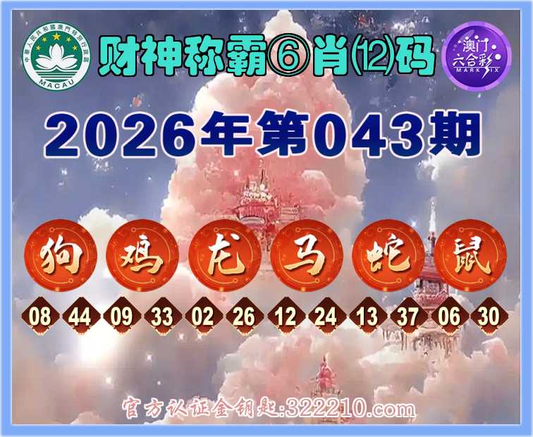 043期: 🍖《财神称霸》 🍖⑥肖⑿码🍖【狗鸡龙马鼠】开:蛇13