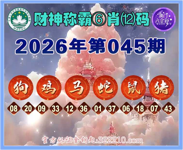045期: 🍖《财神称霸》 🍖⑥肖⑿码🍖【狗鸡马鼠猪】开:蛇01