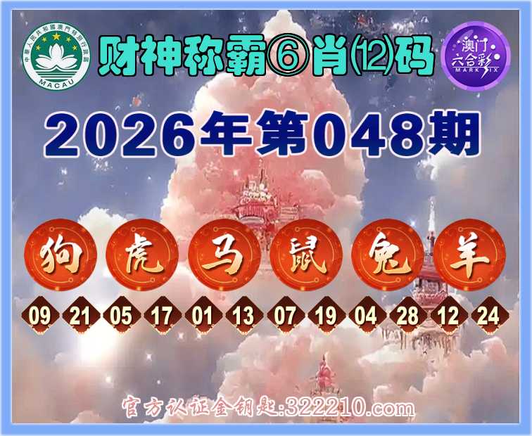048期: 🍖《财神称霸》 🍖⑥肖⑿码🍖【狗虎马鼠兔】开:羊24