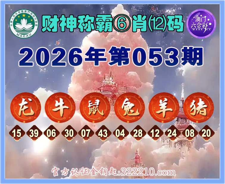 053期: 🍖《财神称霸》 🍖⑥肖⑿码🍖【牛鼠兔羊猪】开:龙15