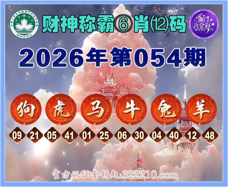 054期: 🍖《财神称霸》 🍖⑥肖⑿码🍖【狗虎马牛兔】开:羊48