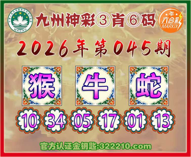 045期:《九州神彩》 🌲③肖⑥码🌲【猴牛】开:蛇01