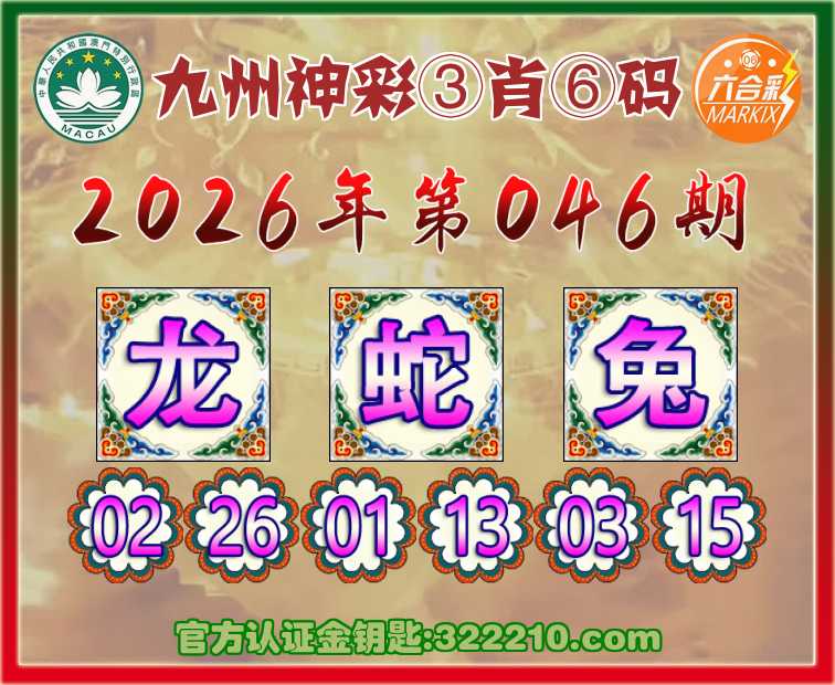 046期:《九州神彩》 🌲③肖⑥码🌲【龙蛇】开:兔03